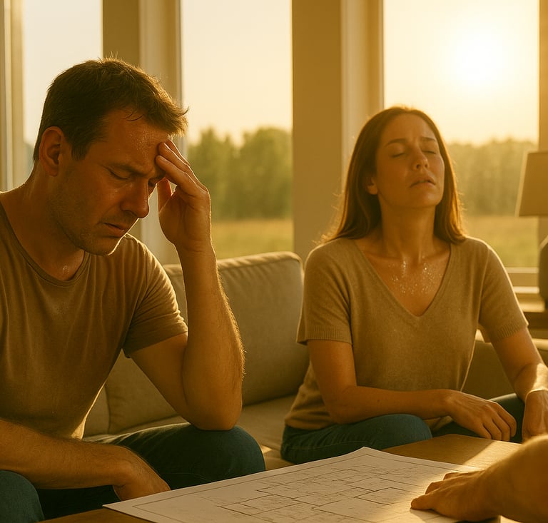 You might not have caught the detail on the sales contract, which limits the orientation of your home on the lot, which means the sun will beat down into your beautiful living room with the floor-to-ceiling windows, all summer long.